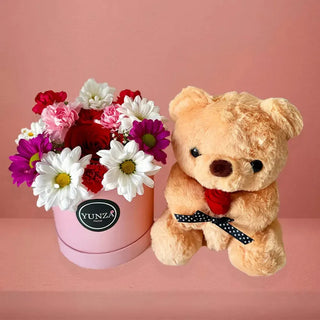 Pastel Flower Box with Teddy Bear - Romantic Gift Set