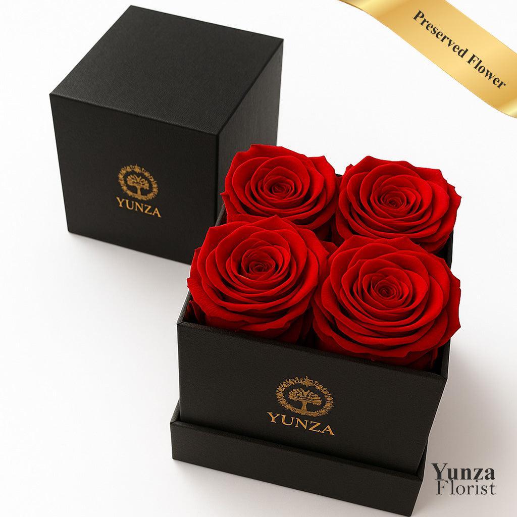 4 Preserved Roses With Square Black Box