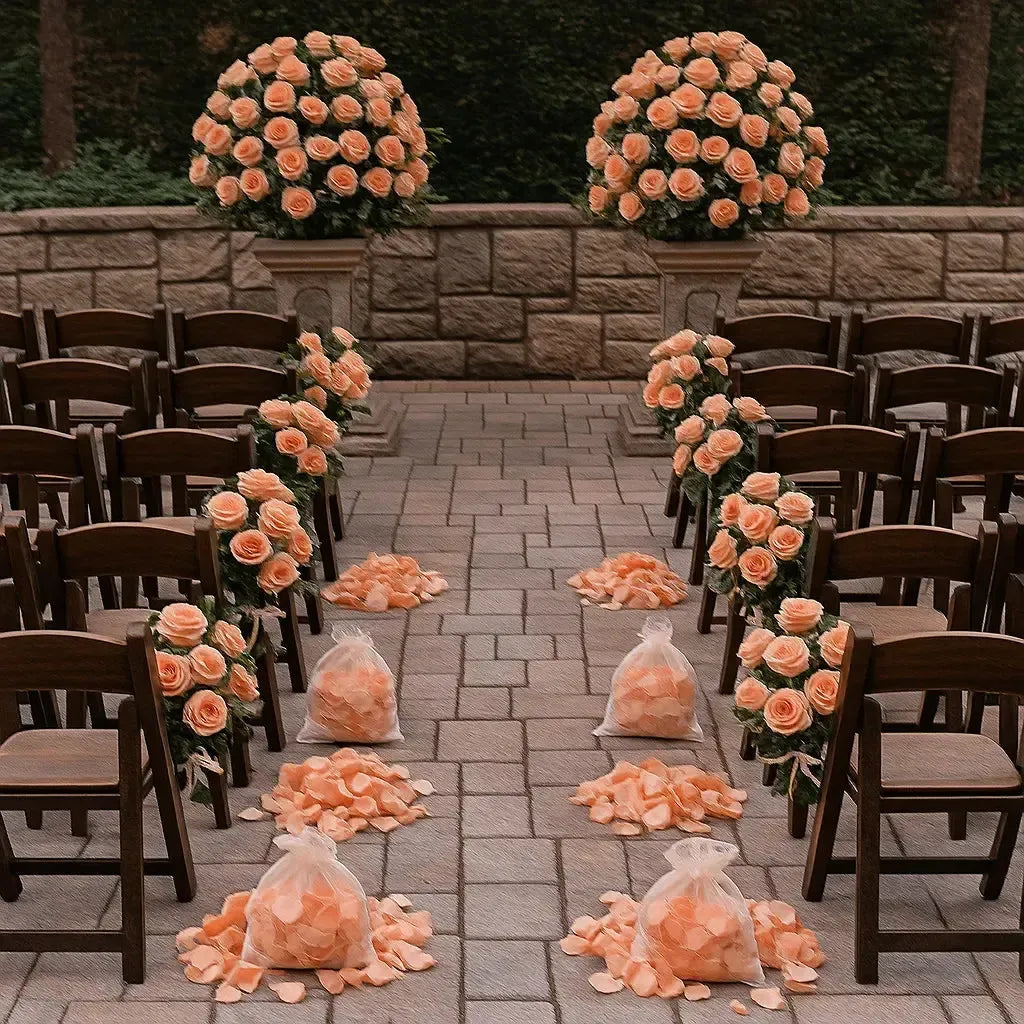 - Rose Petals for scattering along the aisle (choose from white, blush, red, or seasonal mixed).