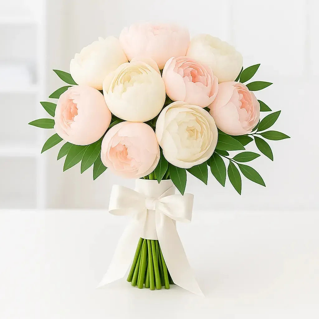 1 Bridal Peony Bouquet (12–16 premium pink or white peonies with greenery, ribbon-wrapped)
