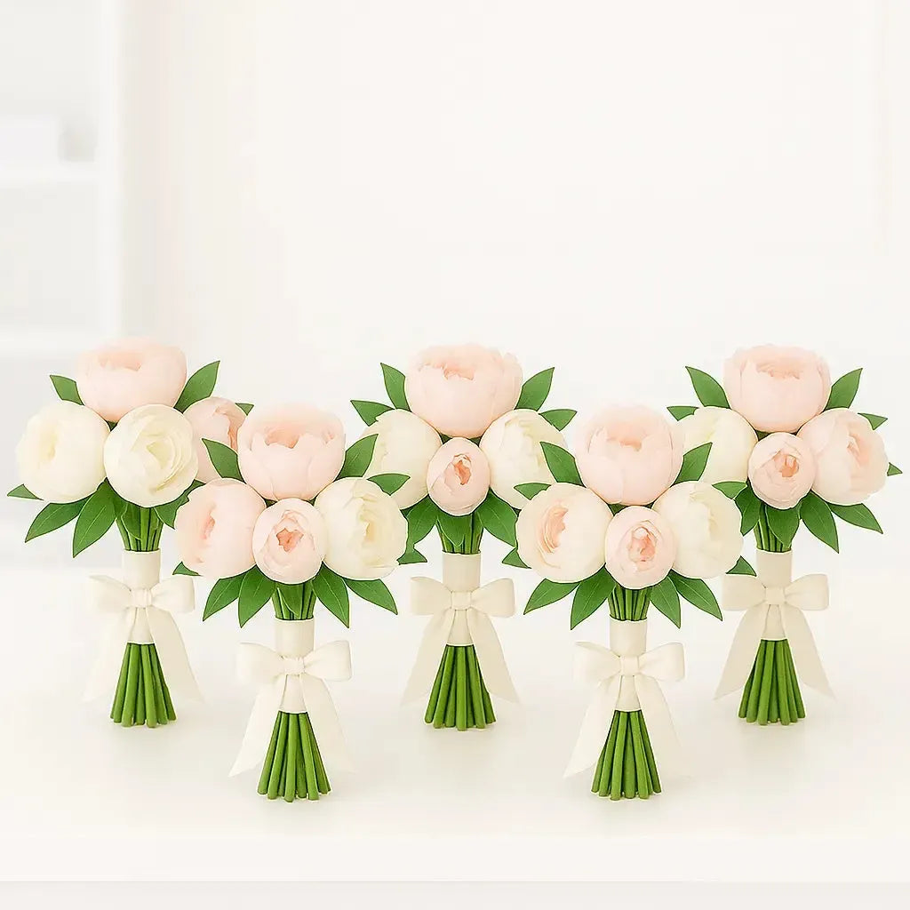 5 Bridesmaid Bouquets (4-5 peonies each, accented with greenery)
